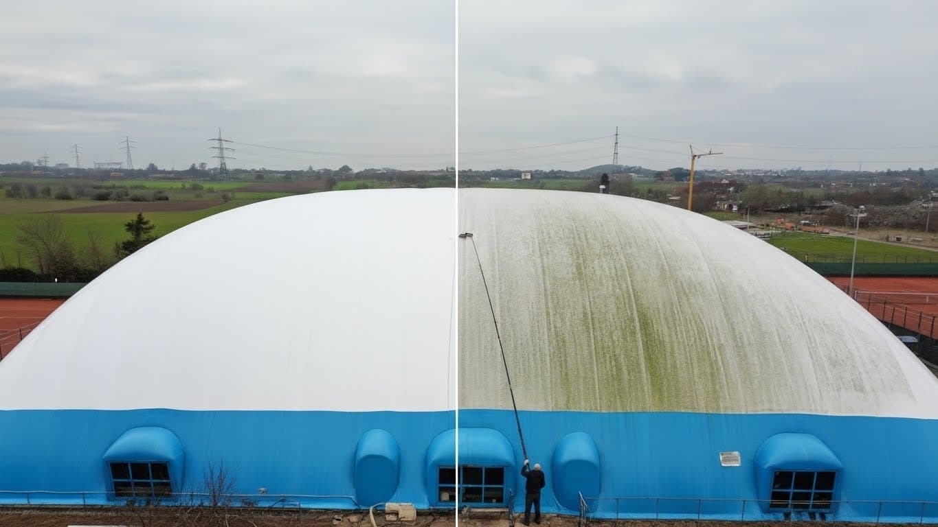 Accumulated contamination doesn't just look unsightly — it actively degrades membrane materials over time. Regular professional cleaning prevents premature deterioration, helping your dome reach its full operational lifespan.